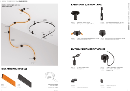 - Гибкая трековая система с шинопроводом оранжевого или черно-текстурированного цвета Lightstar HERMES 48V