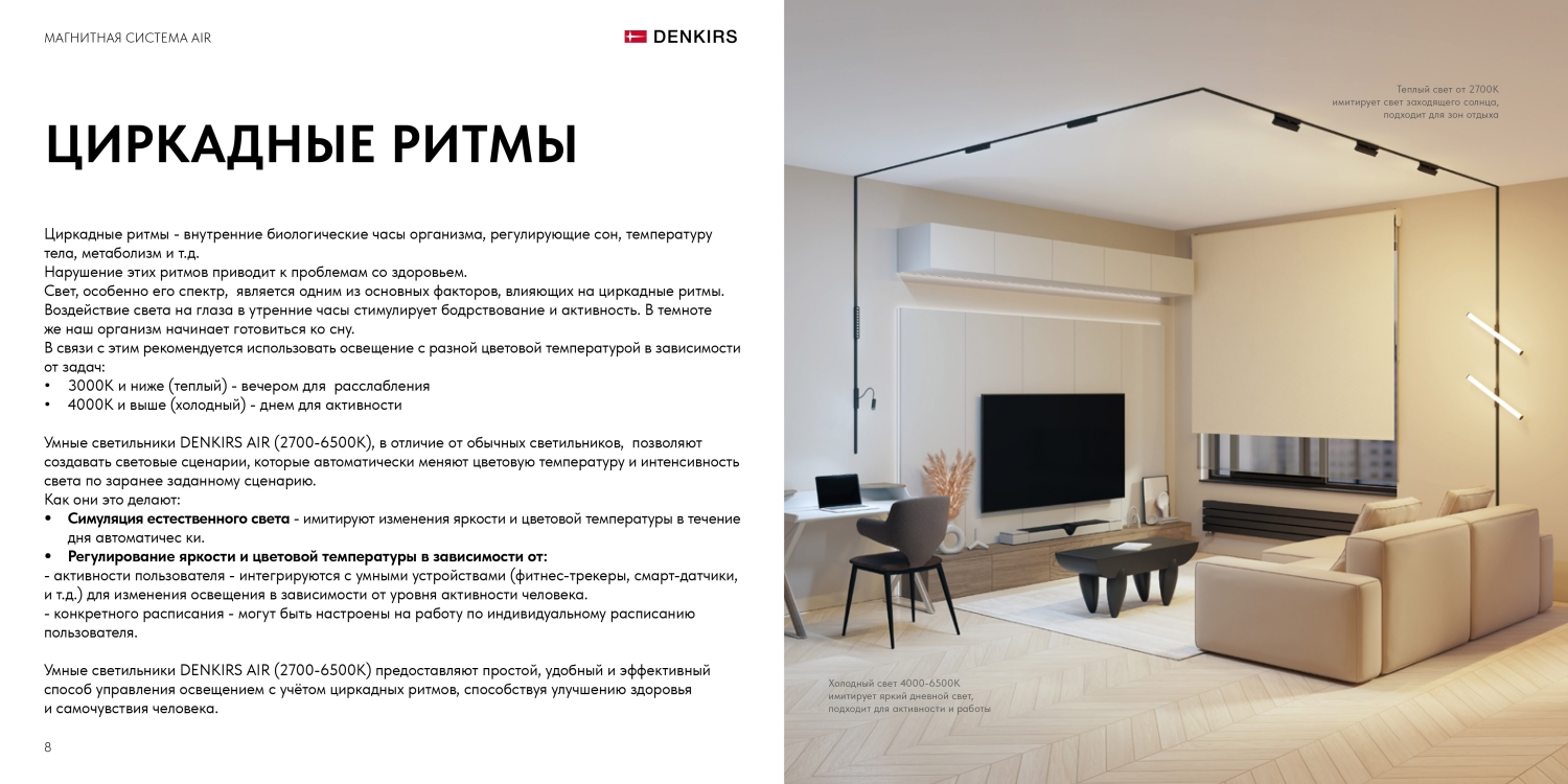 Ультратонкая магнитная трековая система Denkirs AIR 48V для накладного монтажа. Может устанавливаться в уже готовый ремонт. Ширина трека всего 18 мм - для максимально лаконичных световых проектов. Отдельная линейка умных светильников.